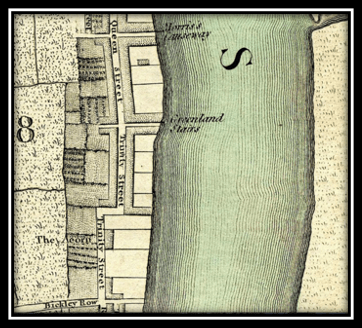 The Pot calling the Kettle Black, you say? Reader, you do not refer to your Narrator, surely? Yes, very well, I concede that the Scope of these Maps is insufficient to shew the present Vicinity in its Relation to either its Parish or the City of London. But had I offered a more expansive View, why, the Location of the Greenland Stairs, Trinity-St., and a certain Site on that Street, would be shrunk much too Small to see.