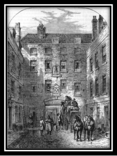 Figure 19. Outer Court of La Belle Sauvage Inn in 1828, by Mr. W. H. Prior, from an Original Drawing in Mr. Gardner’s Collection, in Mr. Walter Thornbury, Old and New London: A Narrative of its History, Its People, and Its Places, &c., Volume I, 1868, p. 217
